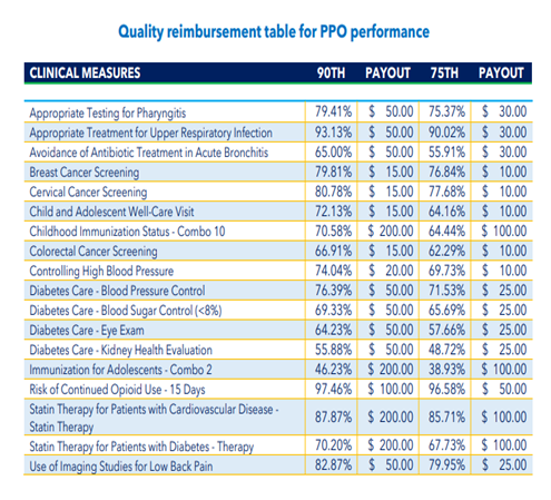 - Each HEDIS/Pharmacy measure will be scored individually and if the PO meets the 75th or 90th percentile benchmark for individual measures, payments are earned for every compliant member.